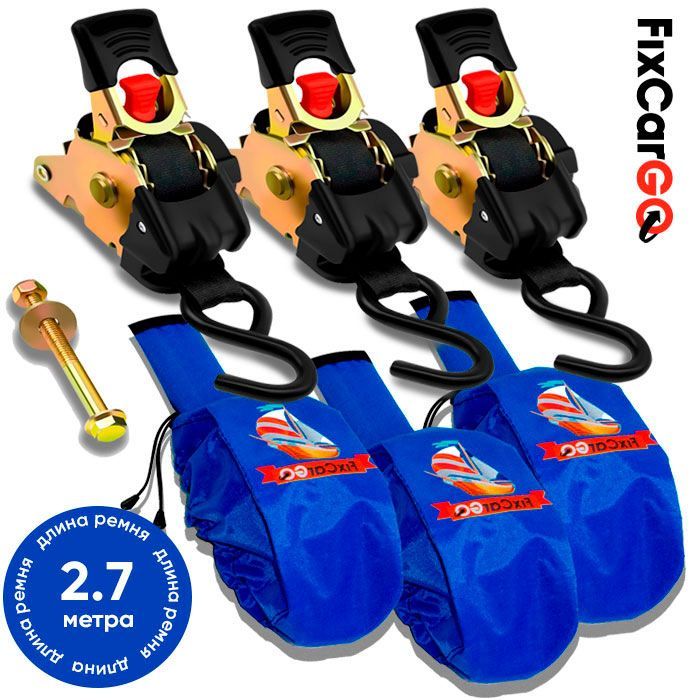 Самозатягивающиеся стяжные ремни 25 мм. 2,7 м. с чехлами (3 шт.)
